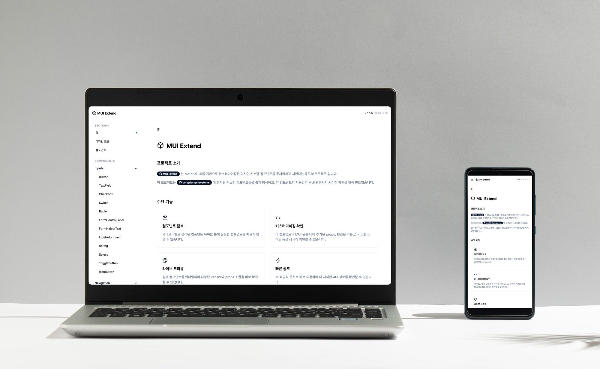 재사용 가능한 컴포넌트를 갖춘 웹 애플리케이션용 포괄적인 디자인 시스템의 쇼케이스 웹사이트